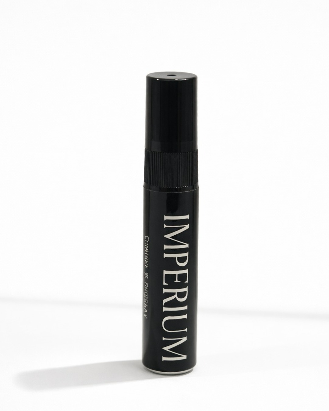 Imperium a wildly radiant composition with leather notes made smoother and milder, mixing accords of rich amber, vanilla, glowing leather, and refreshing spices. The composition opens boldly with fresh ginger, coriander, and cardamom. The note of vanilla tincture stokes a glowing leather accord, a sensual flame grounded in a landscape of rich amber and honeyed woods.